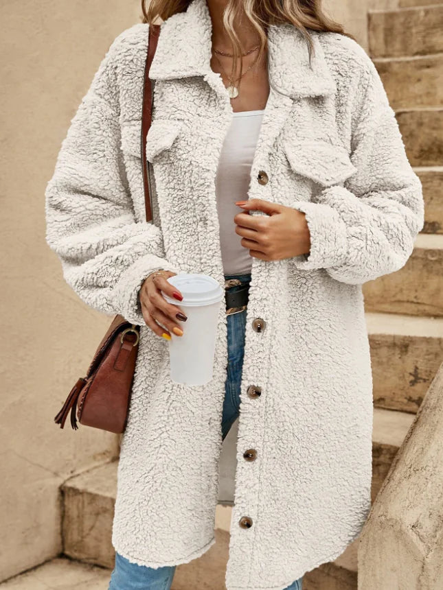 Forestil dig at blive indhyllet i en følelse af ren komfort, som om du sad ved pejsen på en kold vinteraften. Denne jakke er designet til at give varme og hygge uden at gå på kompromis med stilen. Den bløde tekstur skaber en unik oplevelse, når du tager den på, og giver samme følelse af velvære som et varmt tæppe, men med den perfekte charme og elegance til hverdagen.